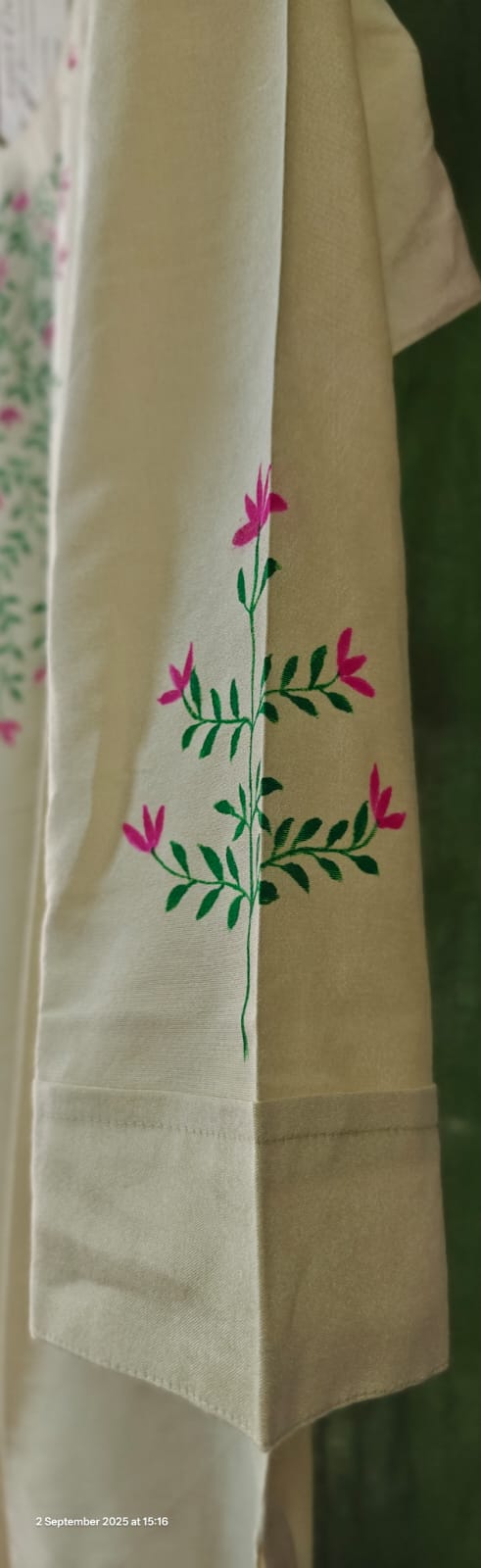 Each piece is uniquely hand-painted, celebrating craftsmanship and individuality — a perfect addition to your sustainable ethnic wardrobe.